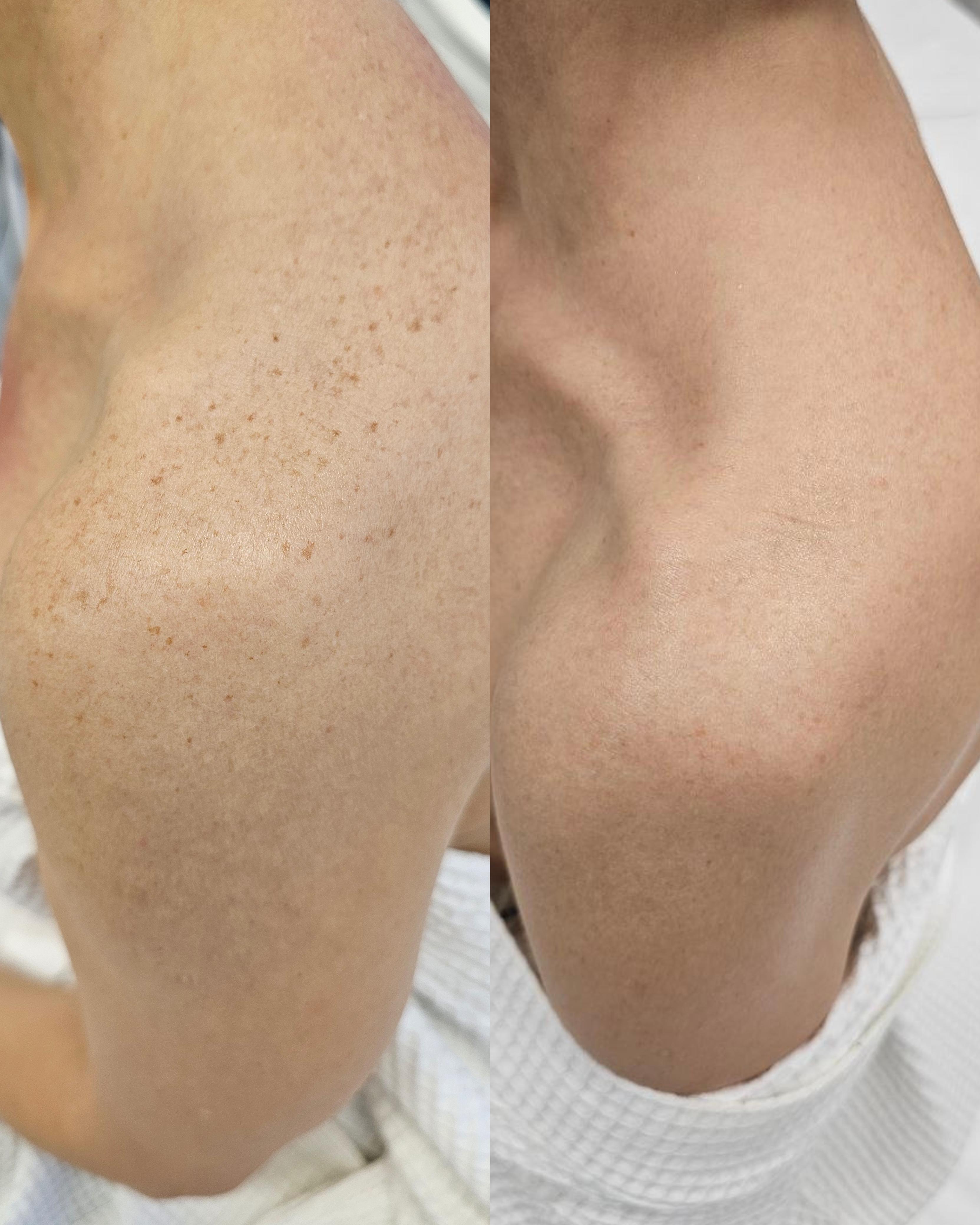 Меланин принимает на себя максимум лазерной энергии, благодаря чему происходит точечный нагрев, и пораженные гиперпигментацией участки дермы вскоре просто отшелушиваются, а в местах обработки появляются здоровые клетки. Цвет лица становится однородным.